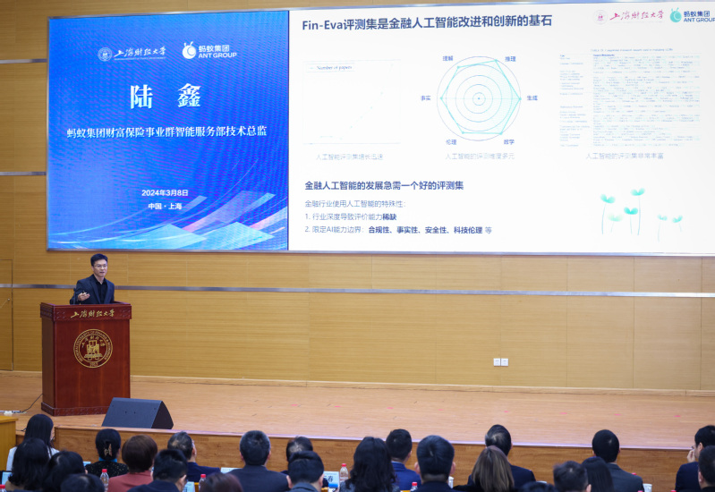 签约仪式上,蚂蚁集团、上海财经大学和国家金融科技测评中心联合发布了《大模型在金融领域的应用技术与安全白皮书》,旨在促进金融人工智能知识体系、技术标准、人才认证体系的形成。上海财经大学信息管理与工程学院院长黄海量解读了大模型在金融领域的应用技术及其安全防控机制,对该领域的评测框架进行了系统梳理,深入探讨了相关的技术应用原理,并对大模型在金融领域的人才培养体系建设进行深入探究。蚂蚁集团财保事业群智能服务部技术总监陆鑫介绍了金融领域的人工智能评测集Fin-Eva,以推动大模型技术的交流研究,持续助力金融行业智能化转型。