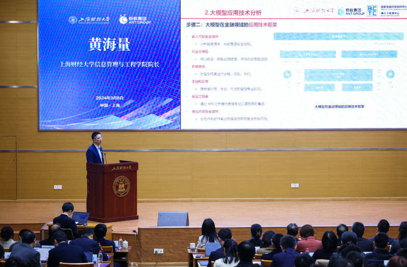 刘元春校长在最后的总结讲话中谈到,近年来,上海财经大学积极探索数字时代下的拔尖卓越人才培养模式,积极布局数字学科,以人工智能为牵引,在培养复合人才、促进产学合作、推动科研创新和社会服务等方面取得了显著成效。2024年全国两会政府工作报告要求深入推进数字经济创新发展,制定支持数字经济高质量发展政策,促进数字技术和实体经济深度融合,深化大数据、人工智能等研发应用,开展“人工智能+”行动。相信此次和蚂蚁集团的深度合作将有力推动上海财经大学在AI领域的学科发展,以及高端金融人才培养,并为加速大模型在垂直领域的应用探索提供科技动能。