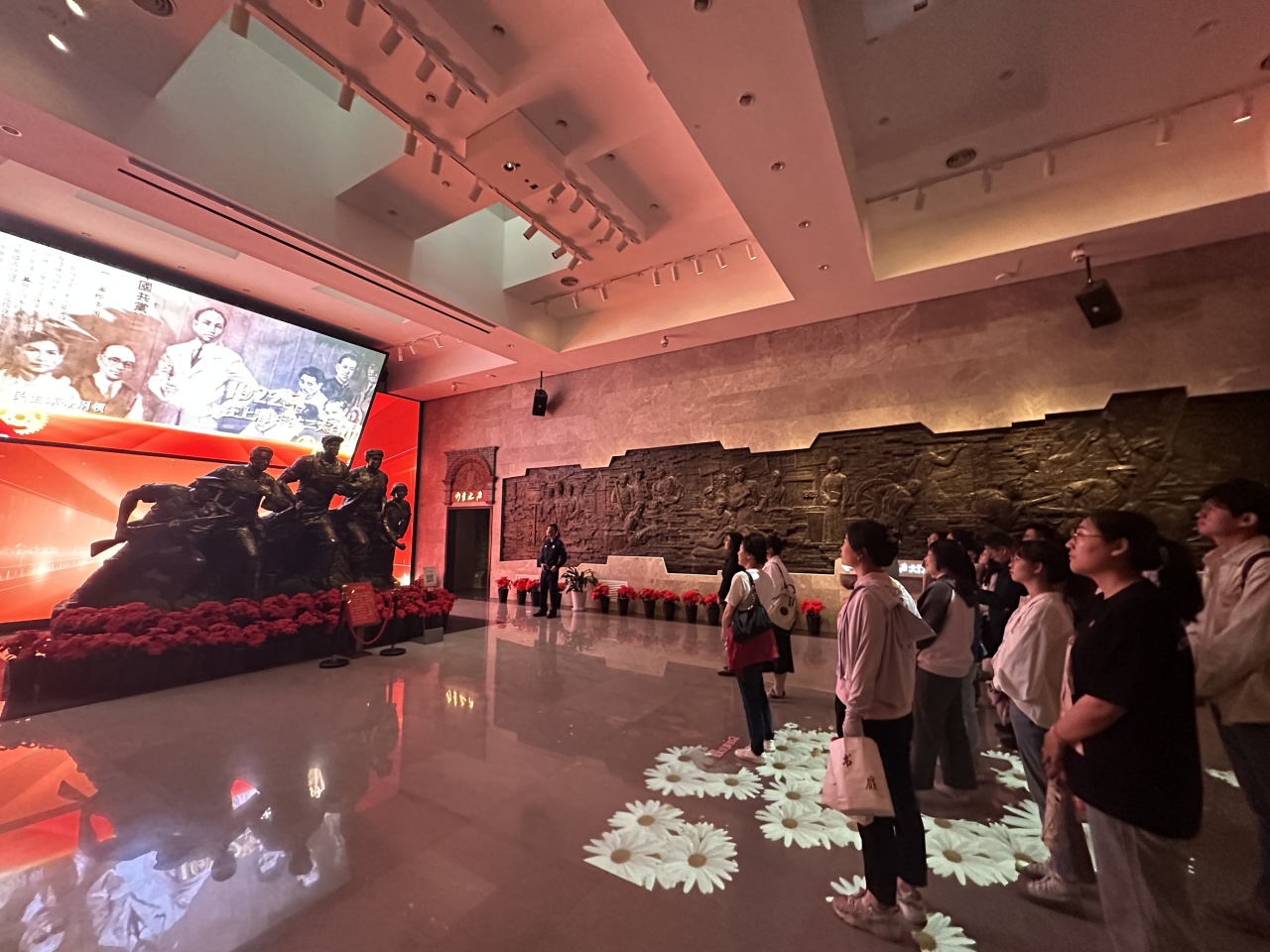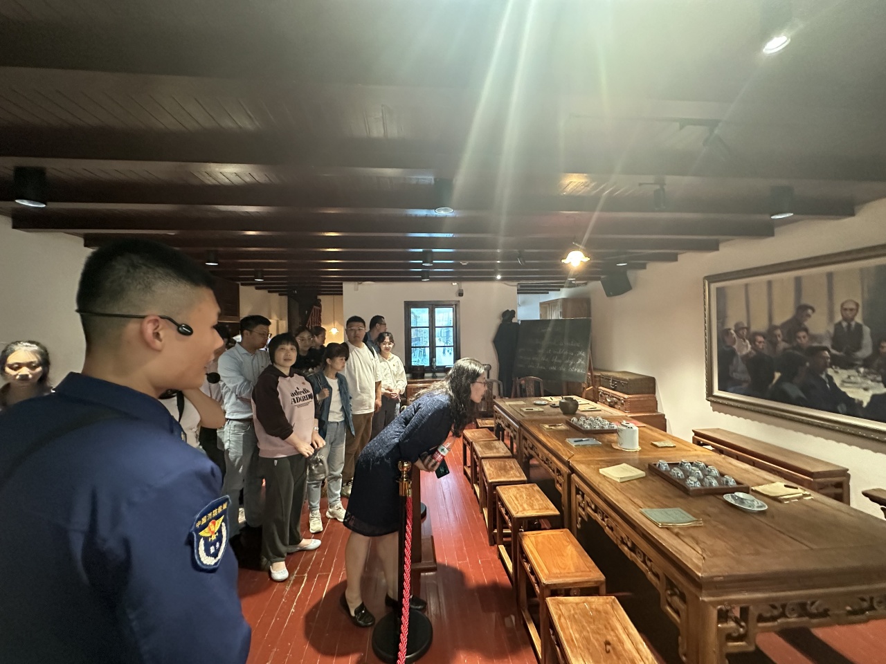 在讲解员的带领下,学院师生党员们参观了由“时局与形势”、“筹备与召开”、“发展与高潮”三个部分组成的主展厅。在场景再现厅,一张大桌子、一块小黑板,代表们拿着英文讲义进行着秘密会议,生动再现了中共四大召开的场景。中共四大在党的历史上第一次明确提出无产阶级领导权和工农联盟问题,为中国共产党从“宣传性的政治小团体”转变发展为“真正的群众性政党”奠定了基础。在参观过程中,党员们全面了解了中国共产党在艰苦卓绝的环境下,为实现国家独立、民族解放而艰苦奋斗的历史过程,让人仿佛穿越时光,亲历党的奋斗历程,深刻感受红色文化的魅力。