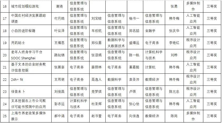 近日,2020年上海财经大学计算机应用能力大赛于信息管理与工程学院成功举办。从2019年10月大赛报名启动以来,共有四十支队伍百余位学生报名参赛,经过前期的赛事培训和一个寒假的制作准备,本次比赛中25支队伍获得了奖项,其中5支队伍通过持续努力的付出脱颖而出获得一等奖,7支队伍获得二等奖,13支队伍获得三等奖。这25支获奖作品分别分布在Web网站设计、程序设计应用、虚拟实验微课程、多媒体制作、数据库应用系统、人工智能应用六个类别,所有获奖作品将被推荐参加即将举办的2020年上海市大学生计算机应用能力大赛。