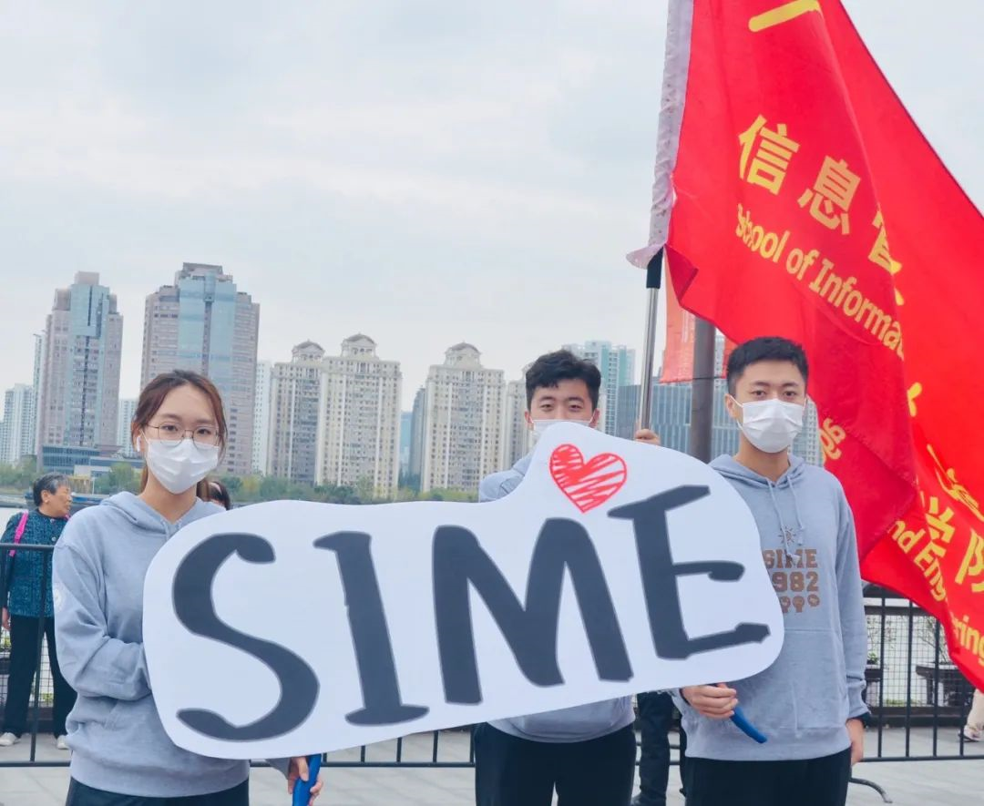 在令人振奋的“千人徒步”活动中。各个学院的方阵迎面走来,无不彰显着各自学院的特色、上财校园的风采以及对祖国的热爱。我院方阵由学院党委副书记周燕老师带队,她的身后跟着六排信息健儿们,信息健儿们身穿印有“sime”的统一服装,每个人都手持一把红伞。来到展示点,随着史诗级配乐《EI Dorado》响起,方阵依次变幻出“S”“I”“M”“E”“99”的图案,气氛高昂,整齐旋转的红伞更是激动人心,不仅彰显了信息学院的特色,还传播了红色文化,弘扬爱国主义精神。