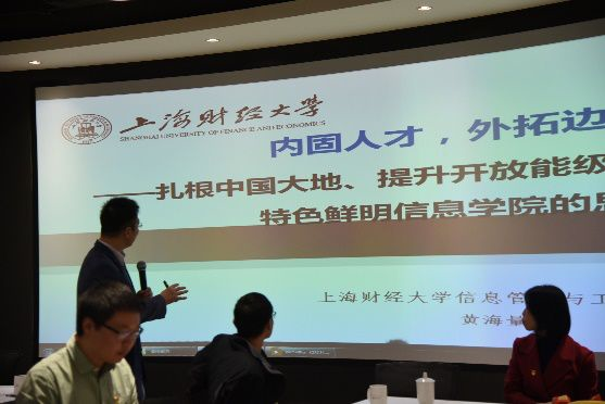 随后双方就金融科技实验室的合作进行探讨交流。城创公司葛总从项目概况、招商工作、运营管理三方面介绍了城创金融科技园区的情况。学院常务副院长黄海量简要介绍了学院教师运用迁移学习、机器学习、深度学习、优化、大数据、知识图谱等技术在银行、证券、基金、保险等行业开展的课题研究成果。随后部分教师就研究情况进行了分享。