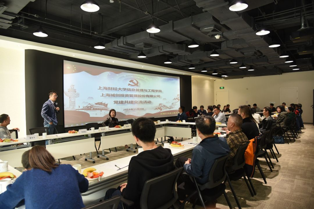 11月9日下午,信息管理与工程学院党员教师及本科生代表前往城创投资管理有限公司共同开展党建交流活动。城创公司党支部书记江庆春、总经理滕国纬、副总经理雎晓燕、副总经理兼财务总监刘宁及部门负责人、青年骨干,学院党委书记王淑范、学院常务副院长兼党委副书记黄海量、学院党委副书记周燕、学院教工两个支部成员及其他师生代表共五十余人参加了本次活动。