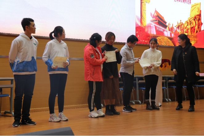 2019年12月6日18:30,在校大学生创业实训中心举办“七十春秋,家国同梦,与时俱进学党章”——第十九届党章知识趣味竞赛活动。学院党委书记王淑范老师、党委副书记周燕老师、特邀党建组织员魏顺兴老师、中正财富CEO黄欣校友、学生办公室主任向勤老师、本科生党支部书记刘资颖老师、分团委书记周易老师以及院学生会主席团成员出席了本次活动。时值建国70周年,建党98周年,此次活动旨在通过知识竞答、节目表演等形式带领学院师生重温党章,回顾历史;激发师生的爱国爱党之情,表达对祖国的歌颂与祝福。