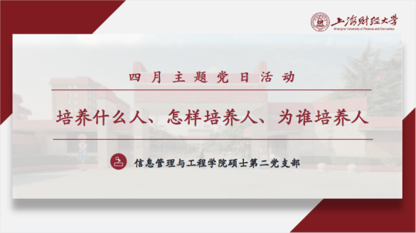 4月24日晚,信管学院研究生二支部开展了四月份主题党日活动。在全国各地的15名党员同志视频参会,会议通过zoom直播间进行,由支部书记吴忻冉主持。会议以“培养什么人、怎样培养人、为谁培养人”为主题,对《新时代爱国主义教育实施纲要》、《关于全面加强新时代大中小学劳动教育的意见》两份文件进行了学习和讨论。
