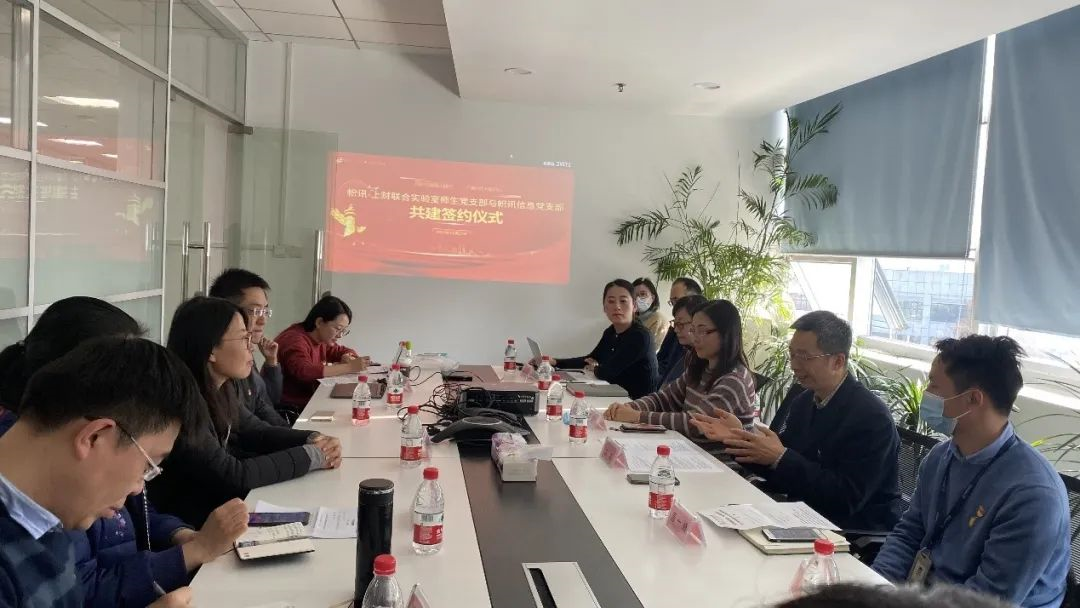 2020年12月22日下午,信息管理与工程学院党委带领帜讯-上财联合实验室师生党支部的全体党员走进浦东软件园,与帜讯信息党支部举行支部共建签约仪式。上海浦东软件园综合党委办公室党务主管唐一峰、帜讯信息党支部书记、总经理沈浩、帜讯信息全体在沪党员共9人,学院党委书记王淑范、党委副书记、常务副院长黄海量、党委副书记周燕、帜讯-上财联合实验室师生党支部书记韩潇以及师生党员共16人,参加了此次活动。活动由学院党委专职组织员王云鹏和帜讯信息党支部委员曹晶共同主持。