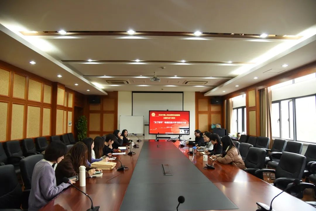 2020年12月15日下午,学院召开全院教职工大会,集中观看学习“为了和平”纪录片第一集“正义担当”。