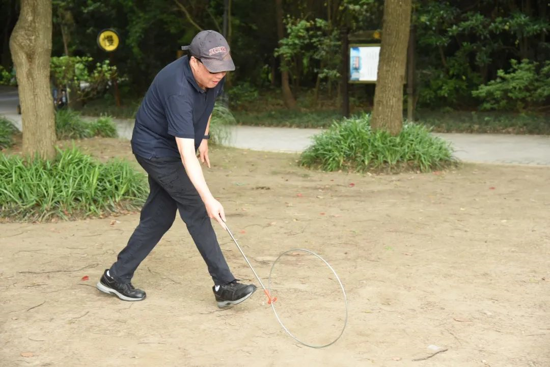 最有趣的莫过于“滚铁环”游戏,需要老师们手捏顶头是"U"字形的铁棍或铁丝,推一个大直径的圆形铁环向前跑。该游戏在上个世纪七十到八十年代十分流行,是经典怀旧游戏之一。