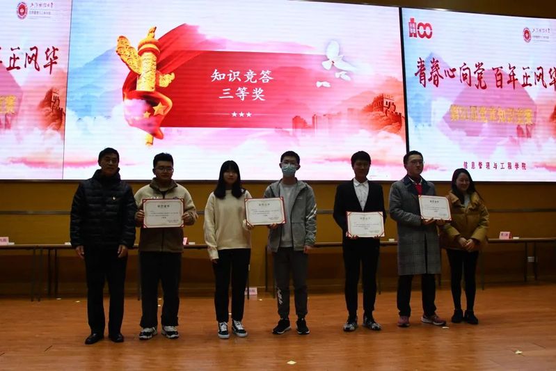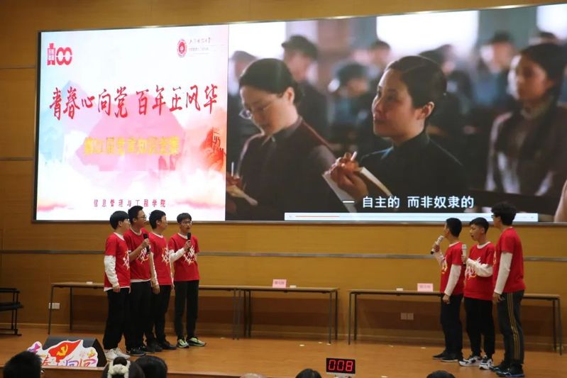 习近平总书记在庆祝中国共产党成立100周年大会上指出:“中国共产党以‘为有牺牲多壮志,敢叫日月换新天’的大无畏气概,书写了中华民族几千年历史上最恢宏的史诗。”本次党章知识趣味竞赛旨在带领全院师生重温红色历史,学习党章知识,学习“进博会”知识,了解十四五规划,关注十九届六中全会精神。参赛队伍分别是教工党支部队、本科生党支部队、信息管理与信息系统队、大数据1队、大数据2队、电子商务队、计算机科学与技术队以及交叉科学实验班队共八支队伍。