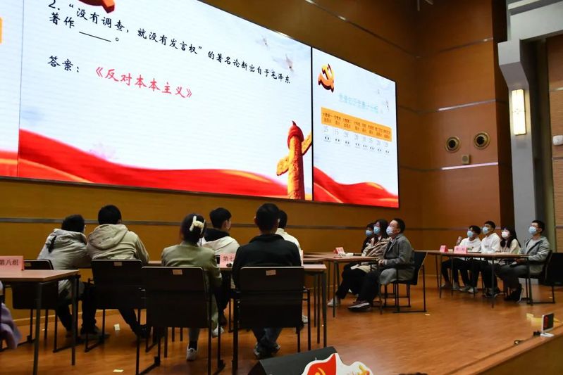 岁月不居,时节如流。百年大党始终延续着生生不息的奋斗精神,期间,以进博会和十四五规划新发展为主题的暖场小游戏让同学们深入地了解党的知识,与时俱进,学以致用。