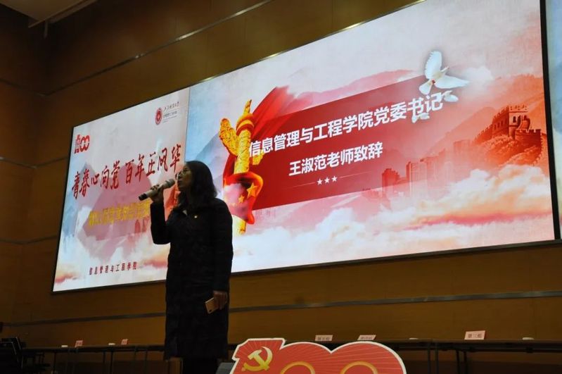 第二个环节,学院党委书记王淑范老师致辞,王书记指出,今年时值建党一百周年,我们在这里举行党章知识竞赛更有特殊意义,党史党章是我党的知识宝库,学习党史党章才能让我们了解党的过去,从而让我们更加珍惜现在,看清未来,每一位师生都要身体力行,汲取党史党章中的力量,转化为我们学习工作的不竭动力。