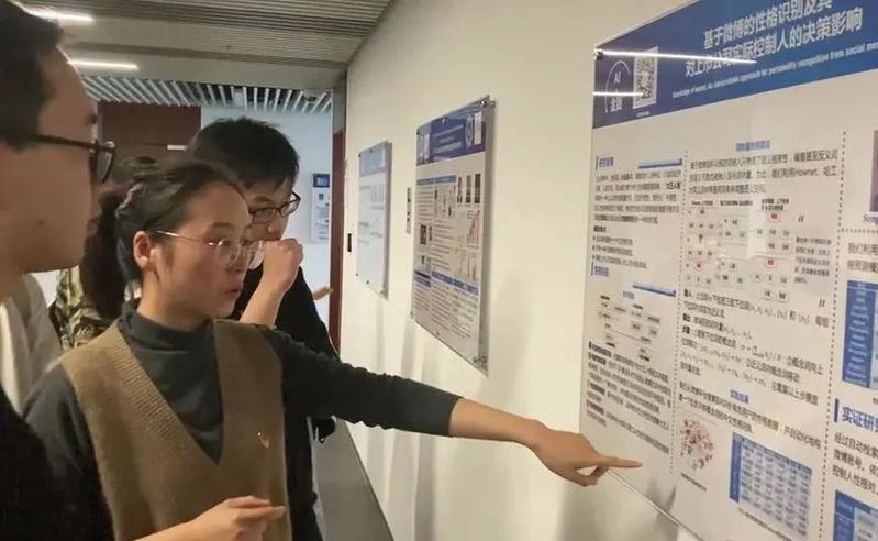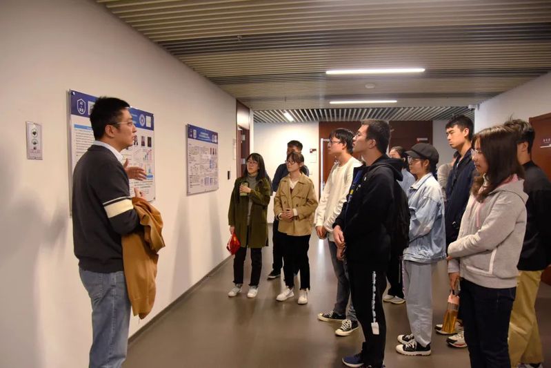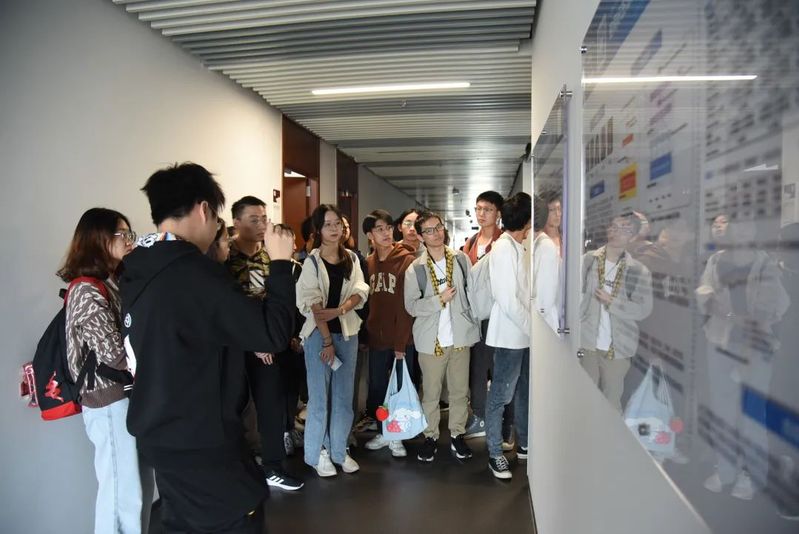 在参观实验室走廊poster成果的环节时,党支部的黄老师、肖升生老师,博士生唐雨晴、博士生陈伟以及硕士生赵一同学为大家讲解剖析了实验室的重点科研成果。同学们紧紧簇拥在一起,聚精会神地听着学长学姐们的热情细致的讲解,或有记录、或有反思、或有交流,沉浸在探求学术与科研的海洋中其乐融融。