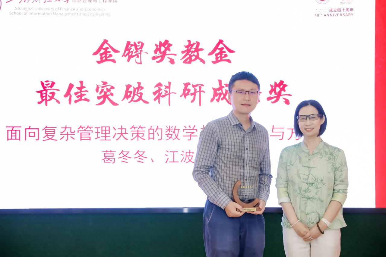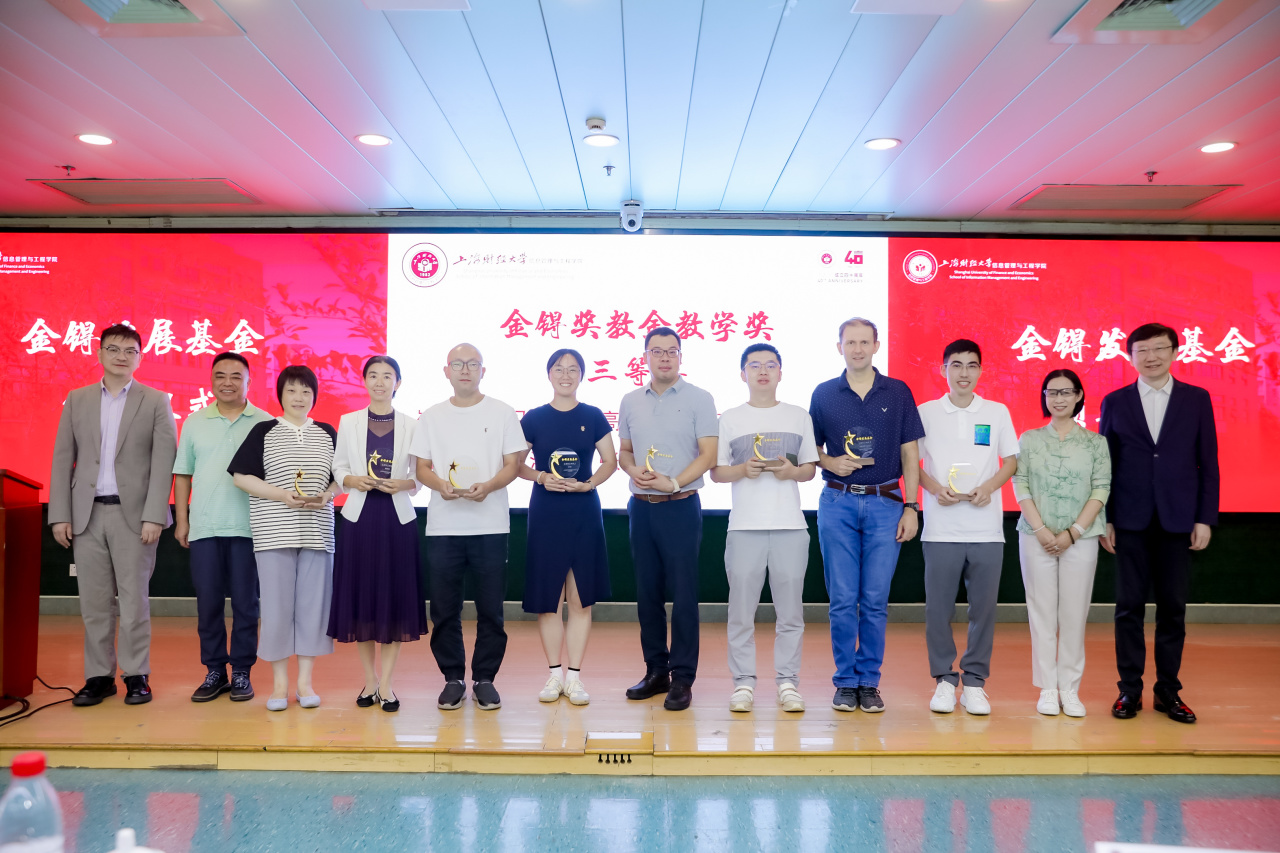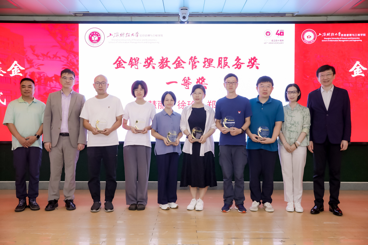 王淑范书记和获奖教师对上海金锝私募基金管理有限公司以及谢红校友给予教育事业的鼎力支持表示衷心的感谢! “金锝发展基金”奖学金和奖教金的设立,既是对学院在人才培养、科研研究和社会服务已有成绩的肯定,更是面向未来的鞭策与激励。相信在“金锝发展基金”的帮助与支持下,学院将有更多的学生、更多的教师在学习、工作中奋楫笃行,追求卓越,助力学院发展再上新台阶。在全体参会人员的见证下,信息管理与工程学院“金锝发展基金”颁奖仪式圆满结束。