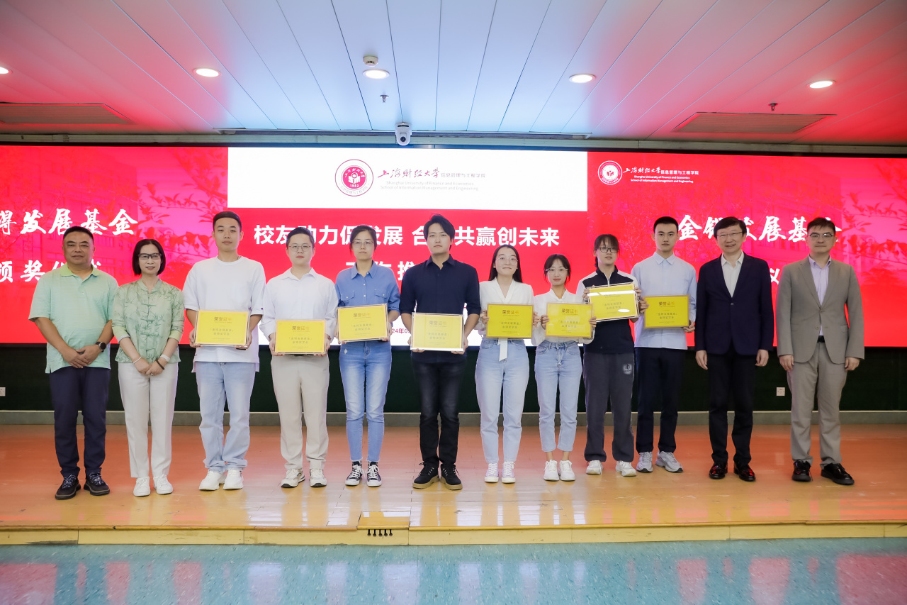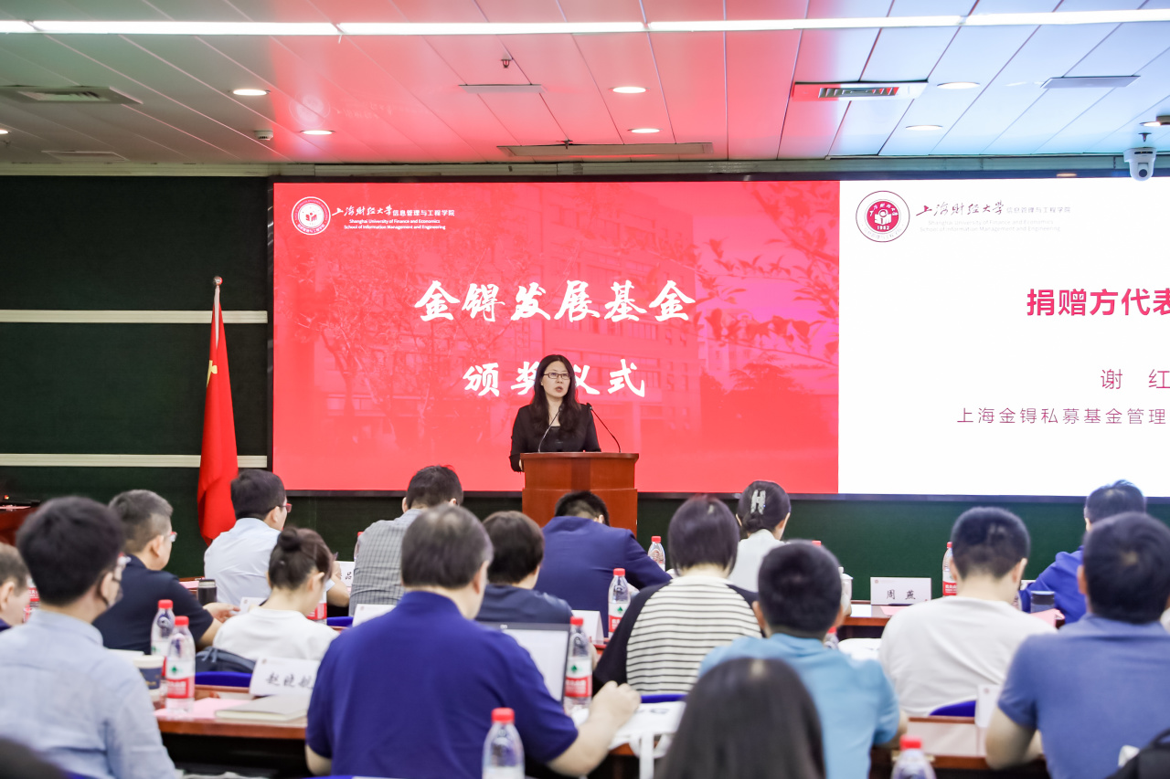 2024年9月28日上午,上海财经大学信息管理与工程学院在学校行政楼一楼报告厅隆重举行“金锝发展基金”颁奖仪式。捐赠方代表,上海金锝私募基金管理有限公司执行董事、学院1986级校友谢红,上海财经大学原副校长、上财信管学院校友会名誉会长刘兰娟,学院党委书记王淑范,学院院长黄海量,学院党委副书记周燕,学院副院长郝晓玲、学院副院长江波、学院副院长杨超林等学院领导出席仪式。颁奖仪式还特别邀请了信管学院校友会名誉会长、1987级校友竺敏明,百联集团首席投资和金融官、学院1989级校友庄启飞,信管学院校友会会长、学院1999级校友黄欣等优秀校友代表参加。获奖教师及学生代表近50人参加了本次颁奖仪式。仪式由学院党委书记王淑范主持。