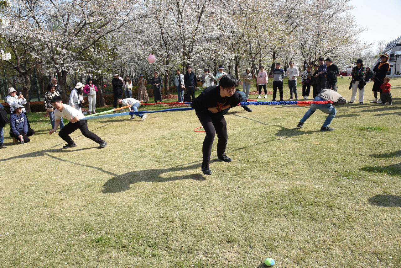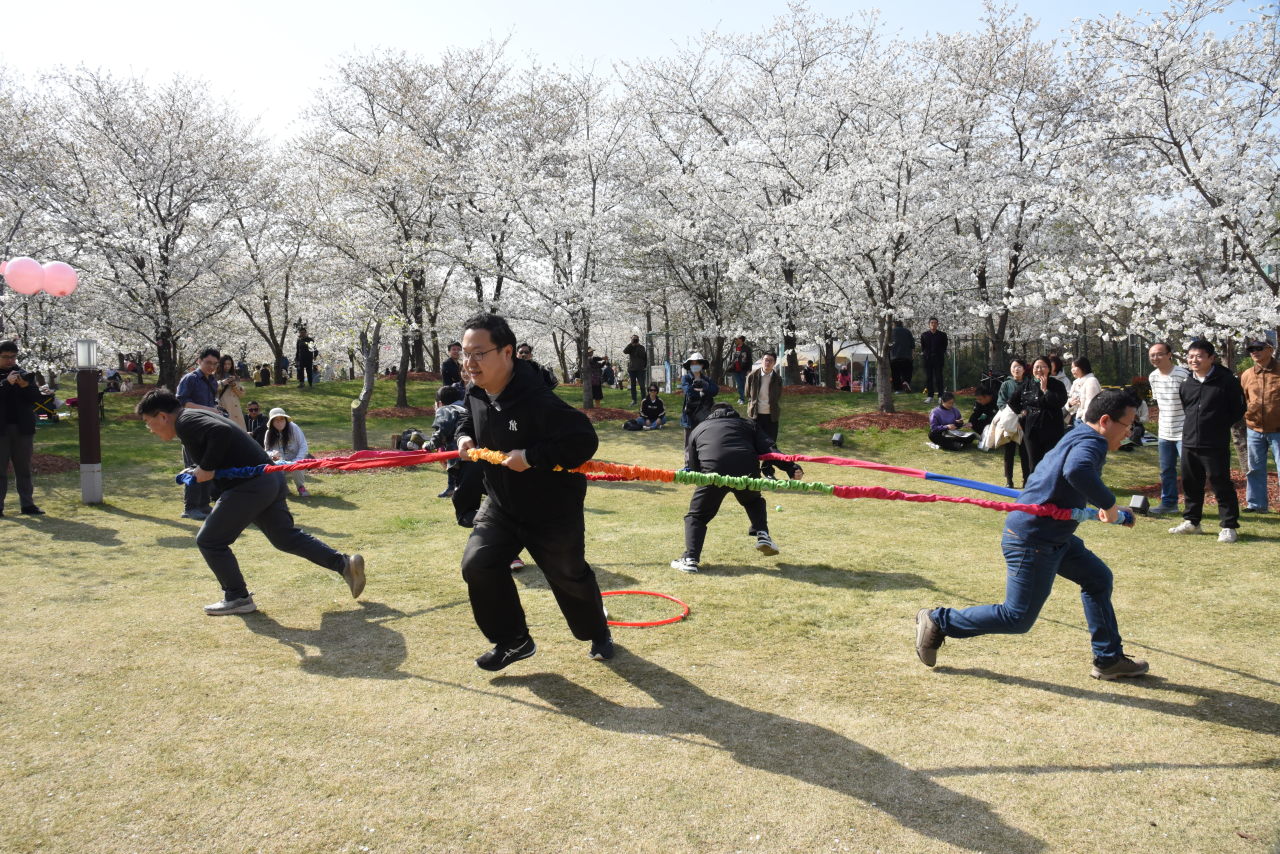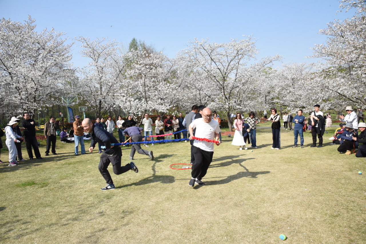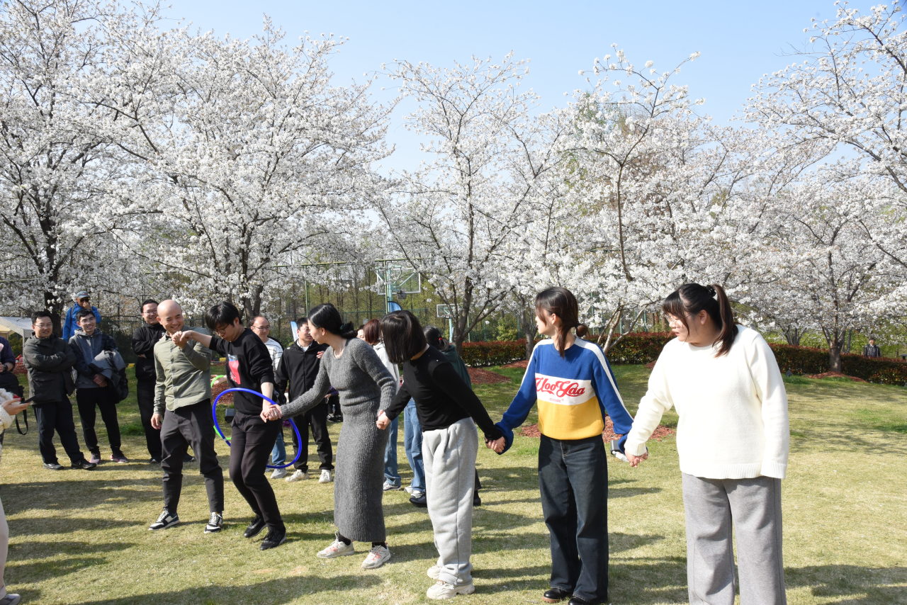 四月的顾村公园樱花如雪,教职工们结伴漫步于樱花林间,感受春日的美好气息,气氛温馨融洽。两院教职工混合组队,参与了精心设计的三个趣味游戏环节。