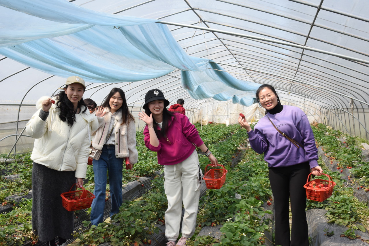 此行的第一站是宝山草莓园。教职工纷纷走进草莓大棚,手提果篮,在翠绿丛中寻找鲜红的果实,在亲手劳作感受丰收的喜悦。