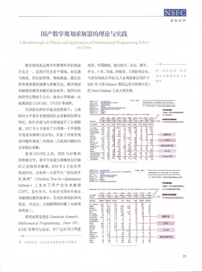 数学规划是运筹学和管理科学的基础方法之一,是国计民生多个领域,如交通与物流、供应链管理、智能制造、量化投资等最重要的建模与求解方法。数学规划求解器是模型求解的基本软件,我国对此的研究长期处于空白,商业应用领域一直被美国的GUROBI、CPLEX等垄断。
