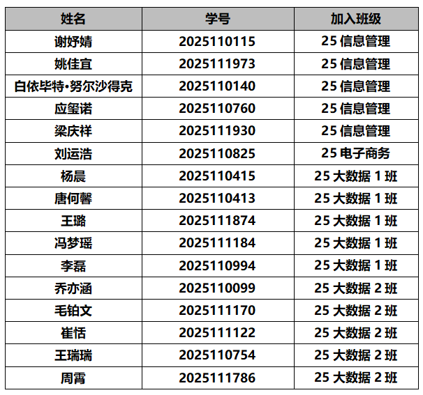 根据《上海财经大学本科学生学籍管理实施细则》《上海财经大学关于2026年本科生自主选择专业(转专业)工作安排的通知》和《2026年信息管理与工程学院转专业报名条件及选拔程序》,信息管理与工程学院(以下简称学院)在2026年3月24日开展了本科生自主转专业选拔面试工作。学院根据学生的综合成绩,确定拟录取名单如下: